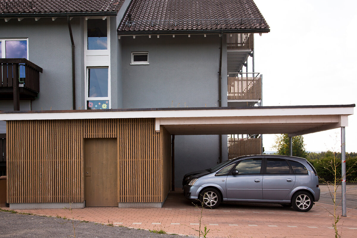 Carport mit Abstellraum aus Holzrahmenbau errichtet