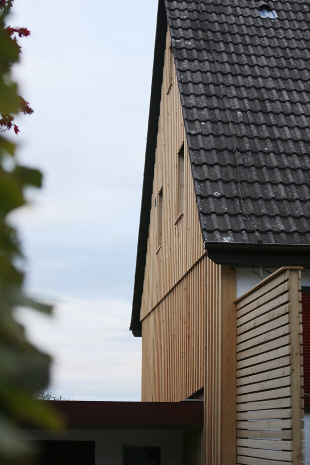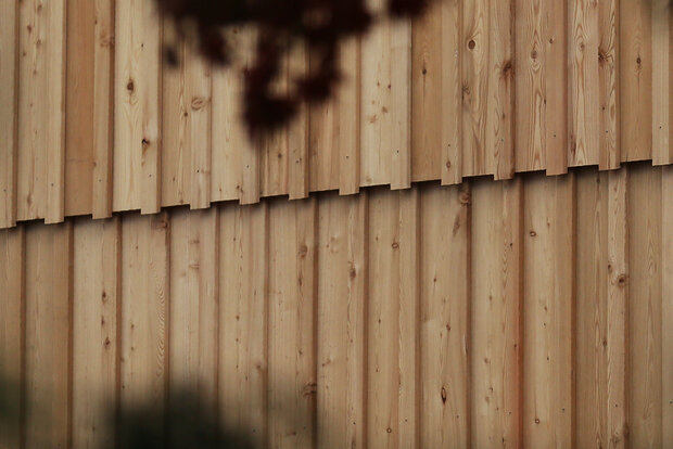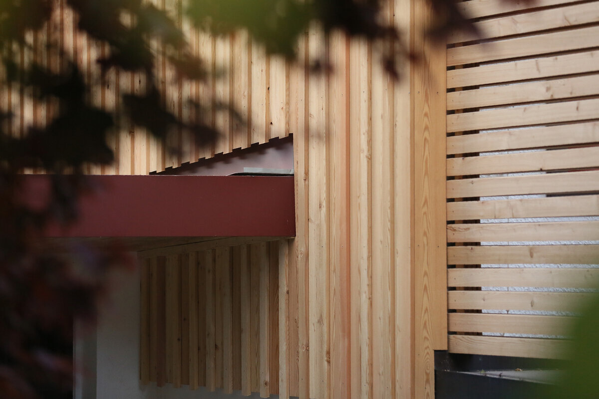Moderne und ökologische Holzfassade durch Bodendeckelschalung