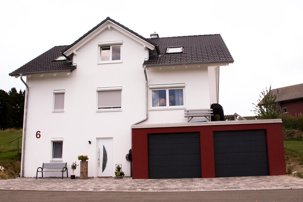Dachstuhl aufgerichtet, Dämmarbeiten und Dachdeckerarbeiten
