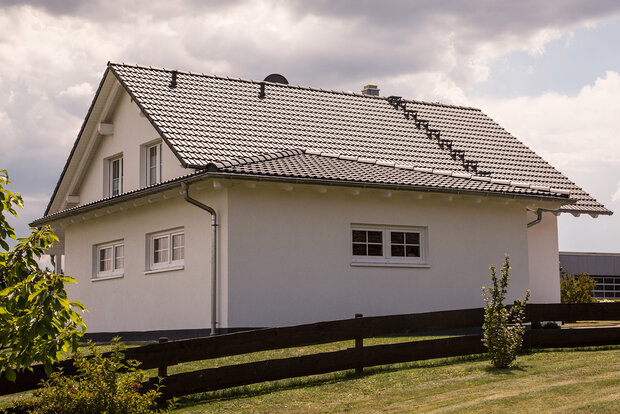 Dach gedeckt (Dachdeckerarbeiten).